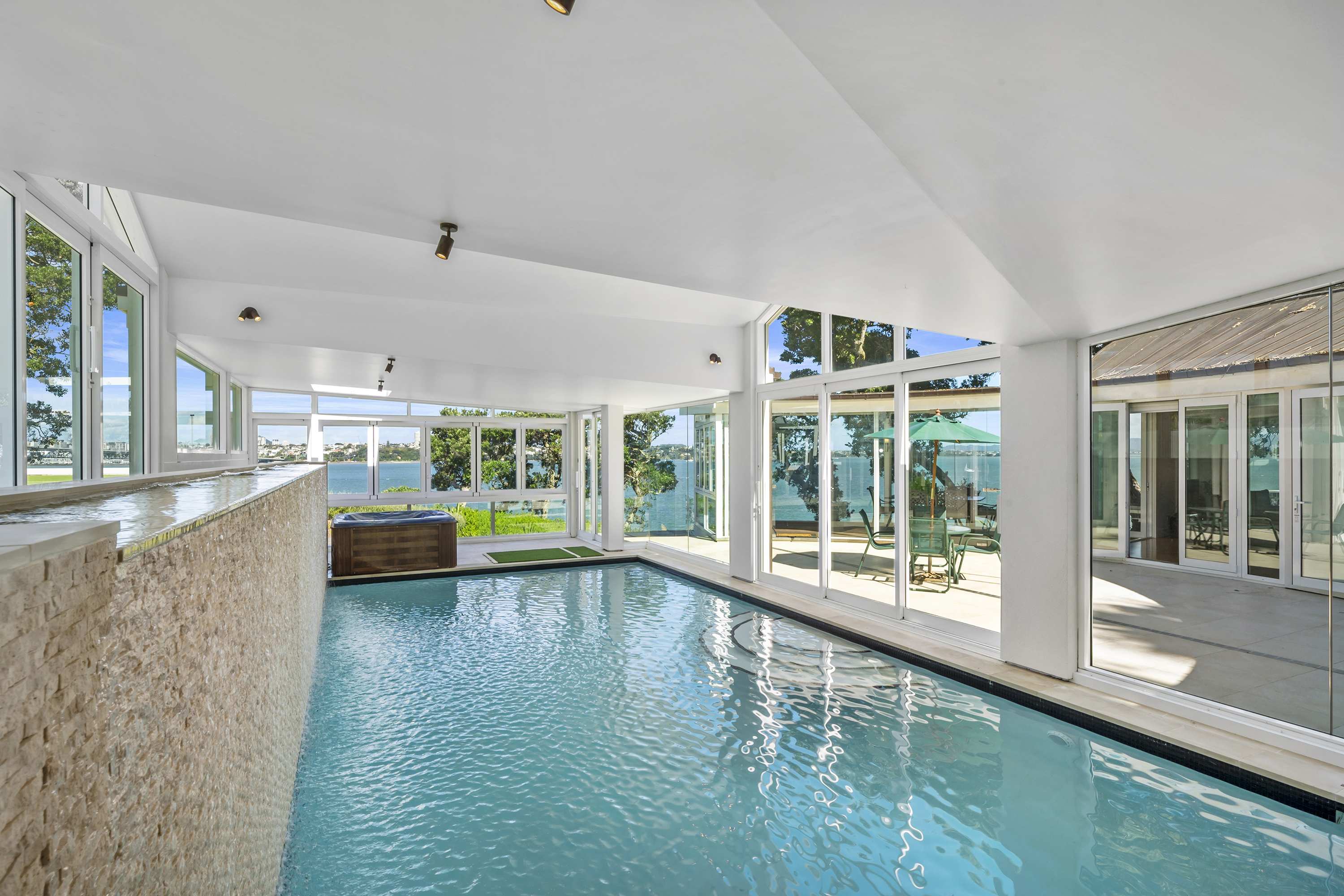 Comprising two residences - 5 Hinemoa Street (the Main House) and 3 Hinemoa Street (the Guest House) - the estate is ideally suited to extended or multigenerational living, hosting family traditions and celebrating milestone moments across generations. In total, it offers eight bedrooms, eight bathrooms, two kitchens and multiple living areas, complemented by an office, games room, indoor heated pool and spa, solarium, wine cellar/gym and a home cinema. Triple garaging and a private tennis court complete this exceptional entertainer's estate. With only a 15 minute ferry ride to the city and with the vibrant Birkenhead village cafes and restaurants just a short walk away, this is a property of rare scale, privacy and global appeal.