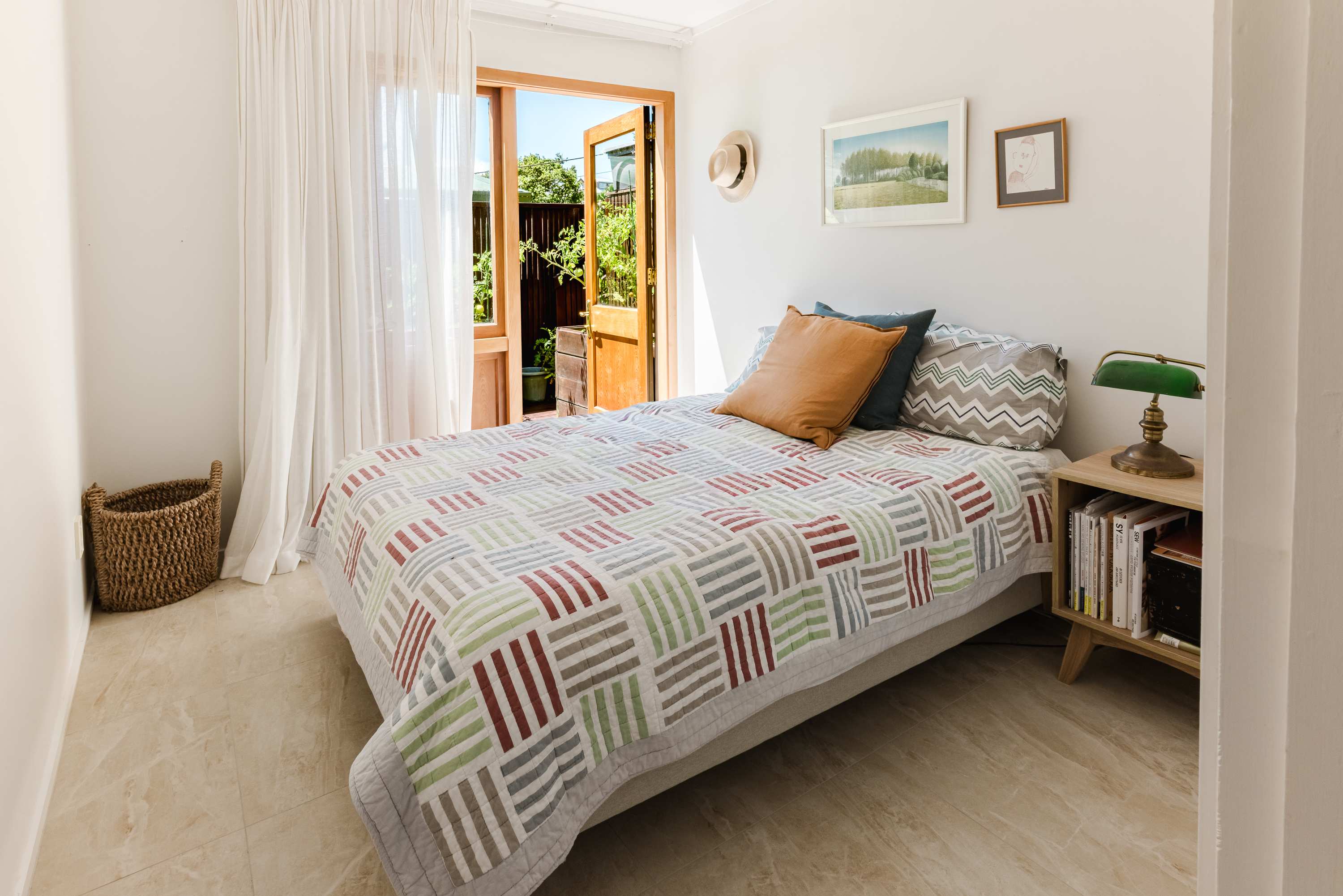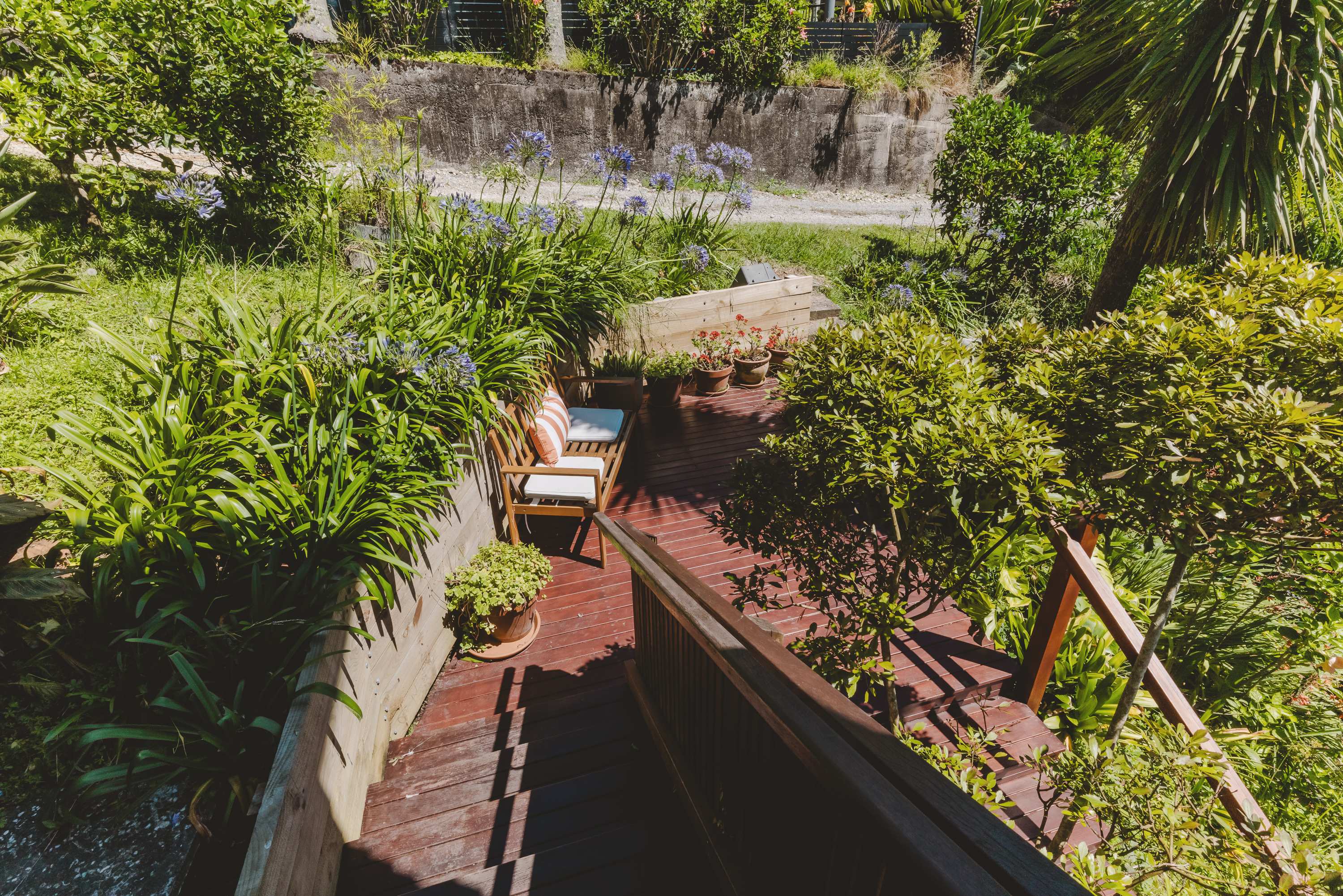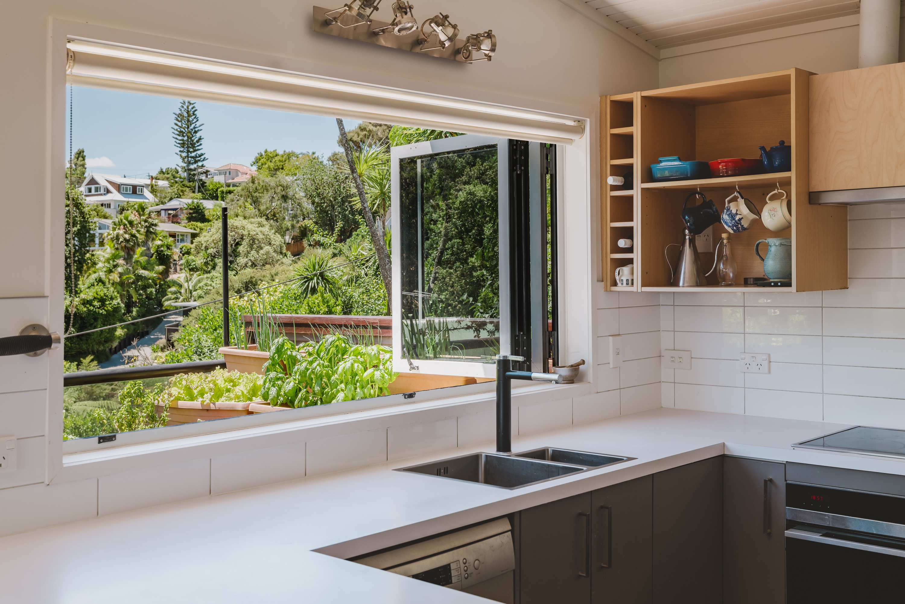 Outside, the sun-drenched garden embraces sustainable living, alive with birdlife and framed by captivating Chelsea Bay views. Established fruit trees enhance the sense of self-sufficiency and connection to nature.