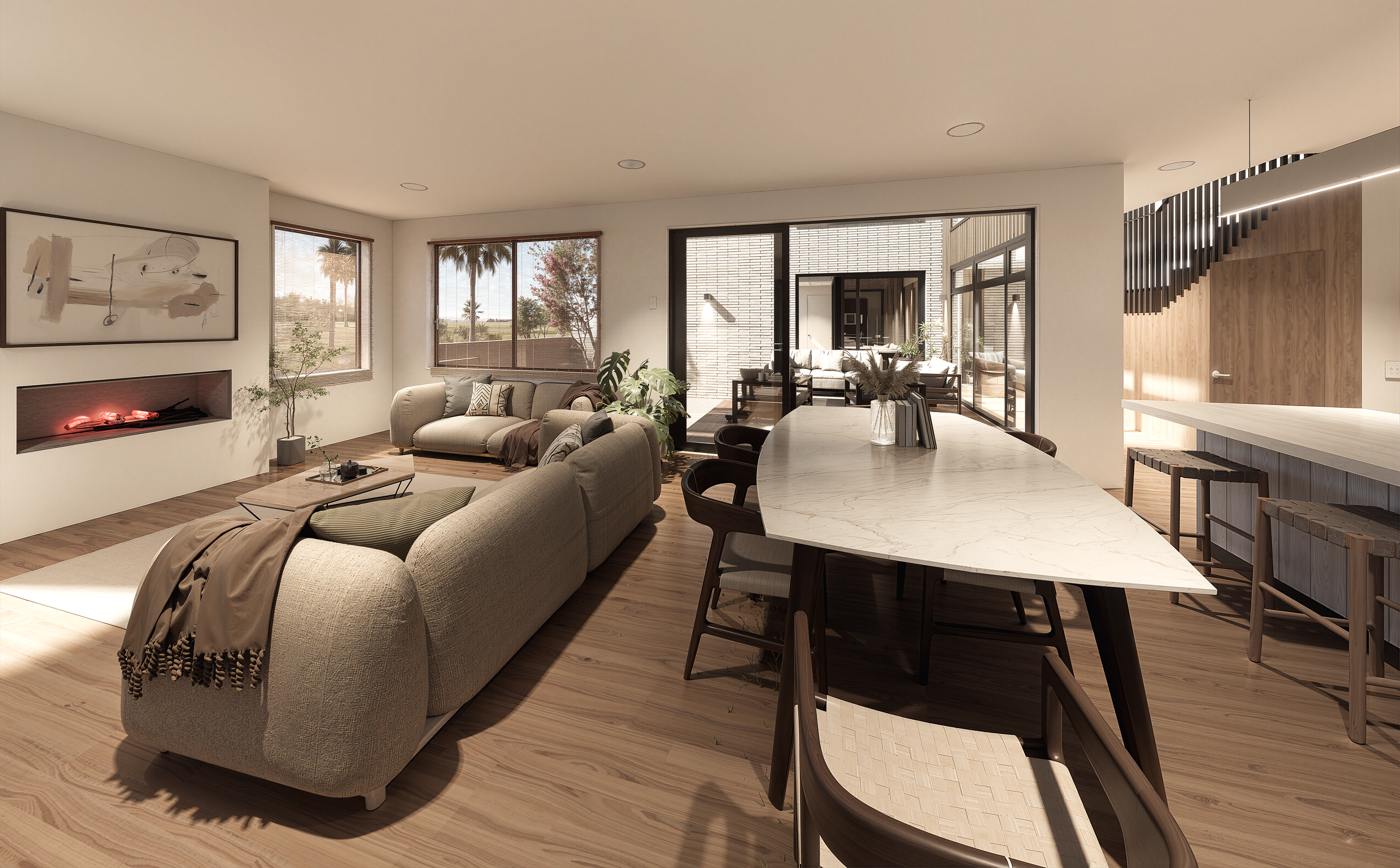 Strategically located on one of the highest sites in the area with that all important north-east facing aspect these homes are positioned perfectly down a private driveway on nicely elevated ground. On offer is highly sought after downstairs indoor/outdoor flow with desirable internal courtyard accessible from open plan living, kitchen and both living rooms. Upstairs the views are wide and spellbinding with 4 generous bedrooms and 2 bathrooms. To complete this freestanding home on a freehold title is the double garage with internal access and storage to suit.