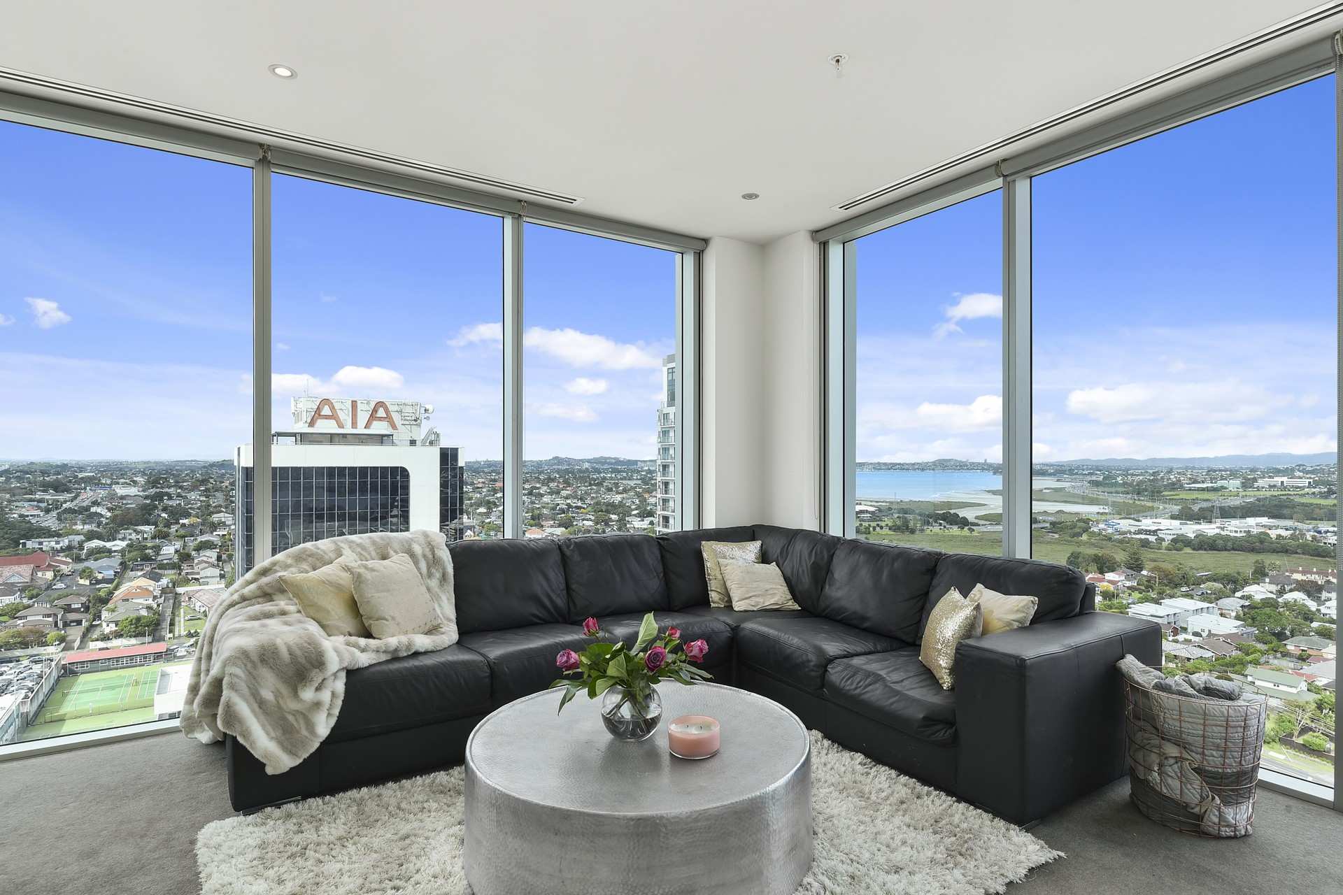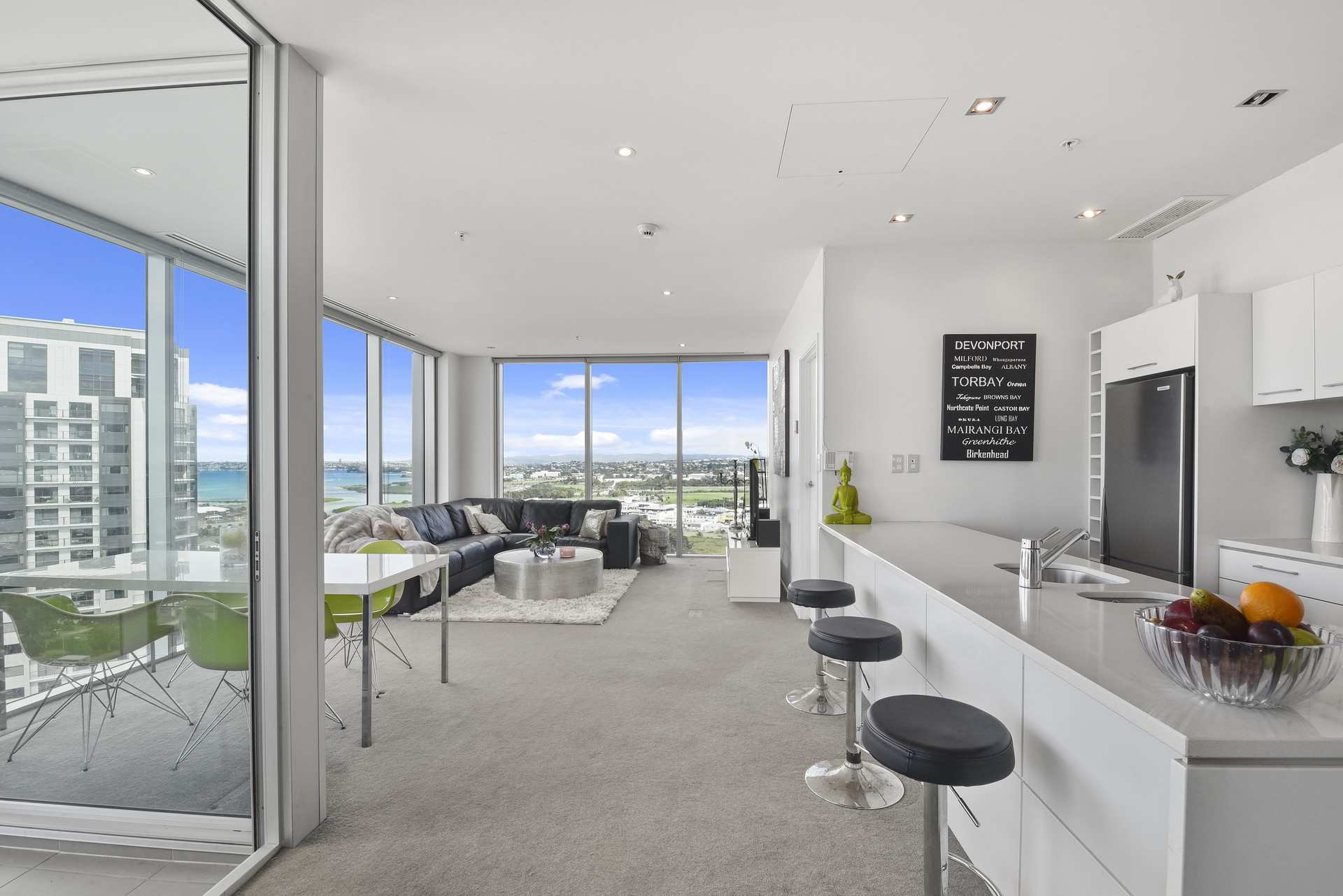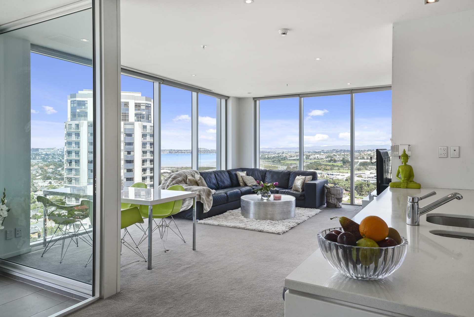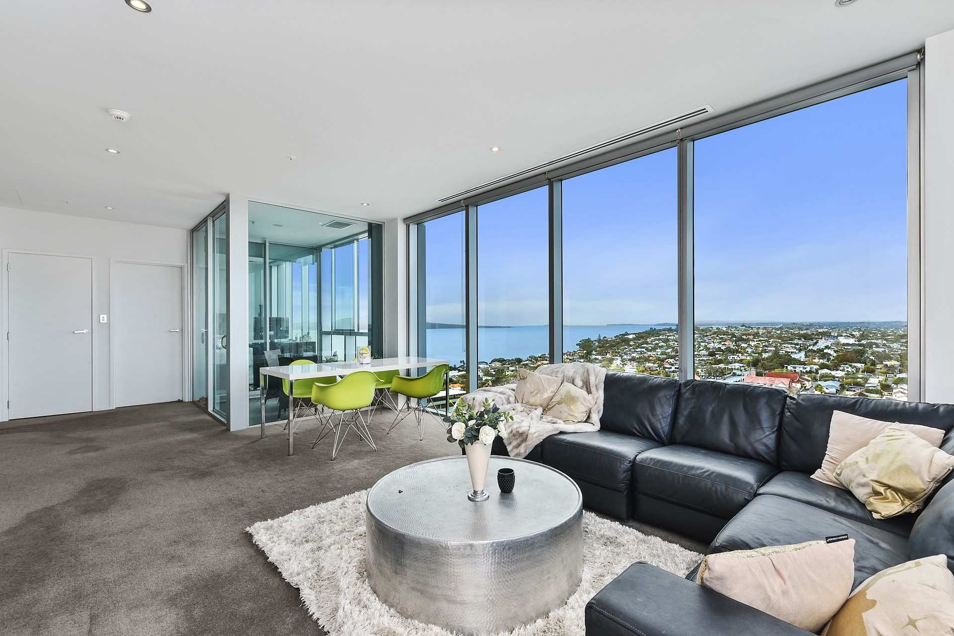 This 16th floor spacious, luxury 98m apartment offers an ideal layout with two ensuited bedrooms, both with walk in wardrobes, a separate third bathroom with laundry and generous kitchen/lounge/dining and deck drinking in the action packed, vast views of Waitemata Harbour, Rangitoto, Auckland city, harbour bridge and urban panorama. Enjoy the sunrises and sunsets before heading out to enjoy vibrant Takapuna at your doorstep. The many cafes and eateries, movie theatre, Sunday farmers market, shopping mall, not to forget beautiful Takapuna Beach for that stroll or power walk, all within easy reach. A feast for the water sport lover as well.