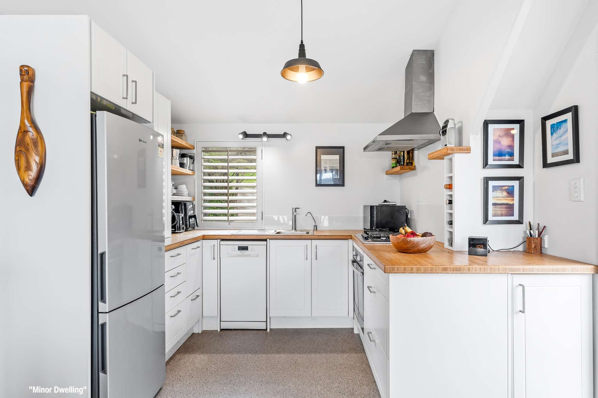 The main home is a light-filled, architecturally designed four-bedroom, 2.5-bathroom residence. Generous open-plan living connects effortlessly to the outdoors, with sweeping sea views and decks perfect for entertaining or soaking up the serenity.